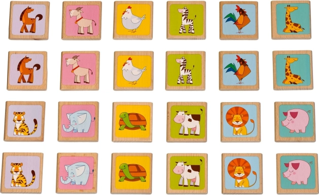 Drewniane memory Zwierzątka marki LUCY & LEO zawiera 12 par kolorowych obrazków ulubionych zwierząt. Każdy kartonik ma wygodny rozmiar, dobrze leży w dziecięcej dłoni, a dzięki jakościowemu drewnu wytrzymuje częstą zabawę. Idealne do pierwszych gier pamięciowych, wspólnych chwil z rodzicami i samodzielnego odkrywania.