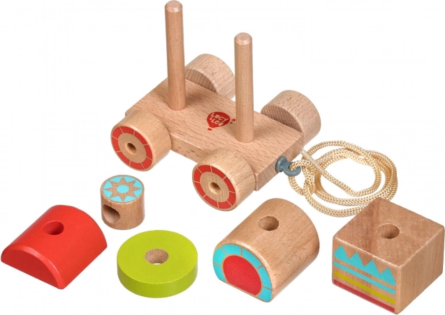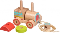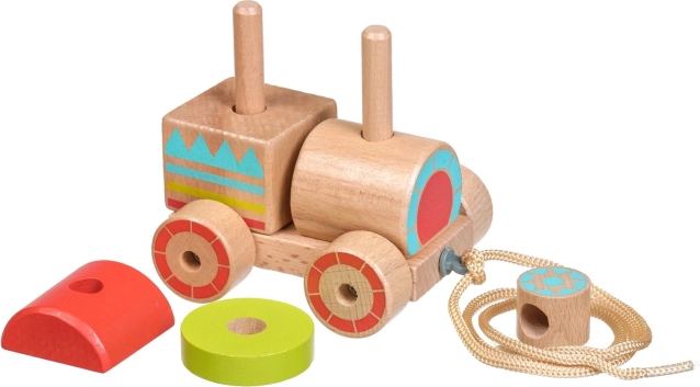 Drewniana ciuchcia do ciągnięcia łączy klasyczny wygląd z nowoczesnymi elementami edukacyjnymi. Dzieci układają kolorowe części na właściwych miejscach, trenują chwyt i poznają podstawowe kształty oraz kolory. Po ułożeniu mogą łatwo ciągnąć ciuchcię za sznurek, rozwijając koordynację chodu.