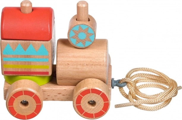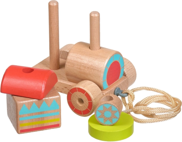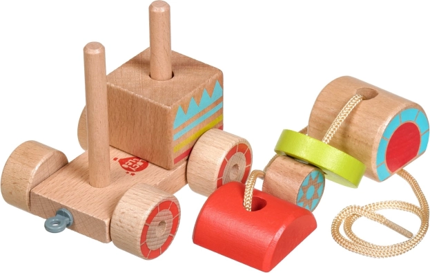 Po ułożeniu ciuchcia może wyruszyć w drogę. Sznurek o długości 45 cm jest idealny dla małych odkrywców.