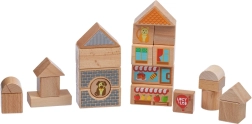 Różne kształty i nadruki (okna, dachy, witryny) pozwalają dzieciom budować domki, wieżyczki i całe uliczki dokładnie według własnej wyobraźni.