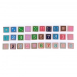 Cyfry 0–9, znaki matematyczne, kropki jak na kostkach oraz tematyczne karty z obrazkami wspierają naukę przez zabawę.
