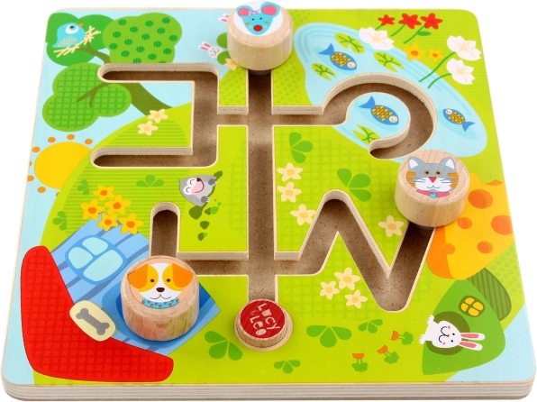Odkryj edukacyjną, pełną zabawy zabawkę dla najmłodszych: drewniany labirynt motoryczny Słoneczna Dolina marki Lucy & Leo. Kolorowa plansza z motywem natury i zwierzątek rozwija małą motorykę, logiczne myślenie oraz koordynację ręka–oko. Dzieci przesuwają zwierzątka po gładkich rowkach i wykonują proste zadania, które wzmacniają cierpliwość i koncentrację.