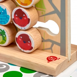 Duże, łatwe do chwytania kołeczki z obrazkami ptaków i kotów zachęcają dzieci do wielokrotnej zabawy i treningu małej motoryki oraz kolorów.