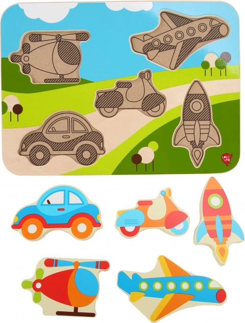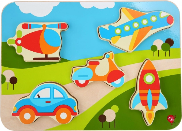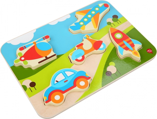 Odkryj zabawną drewnianą układankę z motywem pojazdów, która rozwija małą motorykę, koordynację ręka–oko oraz rozpoznawanie kształtów. Duże, kolorowe elementy dobrze leżą w dłoni dziecka i łatwo wpasowują się w odpowiednie wycięcia. Idealny wybór na pierwszą układankę dla małych miłośników aut, samolotów i innych środków transportu.