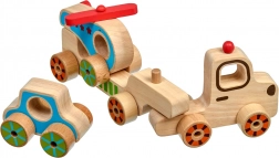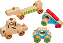 Zestaw wykonany jest z wysokiej jakości drewna z zaokrąglonymi krawędziami dla bezpiecznej zabawy. Dzięki trwałemu wykonaniu wytrzyma codzienne użytkowanie i stanie się ulubioną zabawką w pokoju dziecięcym i w przedszkolu. Świetny pomysł na prezent dla dzieci kochających auta i technikę.