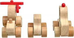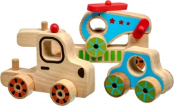 Ciężarówka, autko i helikopter mogą być używane osobno lub złożone w jeden zestaw. Dzieci ćwiczą wyobraźnię i logikę podczas załadunku i przewożenia.
