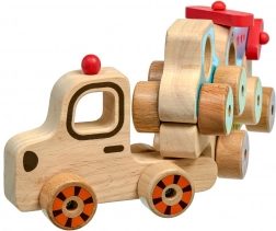 Ruch kół, nakładanie i układanie elementów rozwija chwyt, koordynację ręka–oko i cierpliwość – idealne do pierwszych zabaw konstrukcyjnych i transportowych.