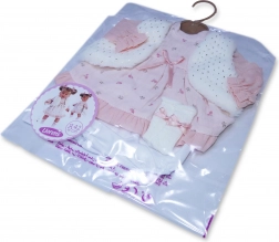 Uzupełnij garderobę swojej lalki: różowa sukienka, miękka biała kamizelka, majteczki oraz praktyczny wieszak do łatwego przechowywania.