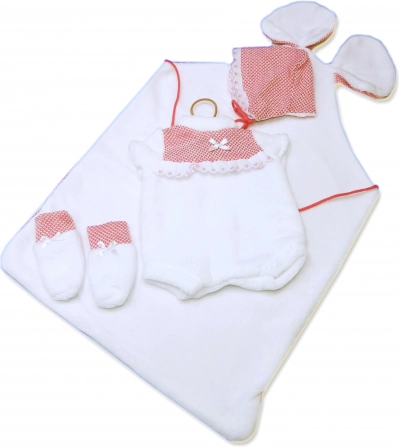 W komplecie znajduje się 3‑częściowy zestaw oraz dekoracyjna mata z uszkami dla jeszcze większej frajdy podczas opieki nad lalką. Zapakowane w foliowe opakowanie z plastikowym lub kartonowym wieszakiem – łatwe przechowywanie i podarowanie.