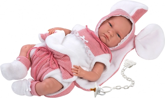 Dekoracyjna mata z uszkami wraz z 3‑częściowym ubrankiem tworzą spójny strój, który nadaje zabawie lalką nowy wymiar.