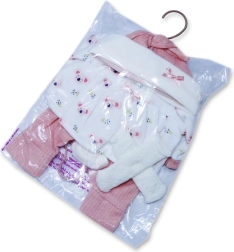 Czteroczęściowy zestaw obejmuje czapeczkę, ubranko, spodnie i skarpetki w dopasowanych kolorach, dzięki czemu lalka zawsze będzie pięknie skomponowana i ogrzana.