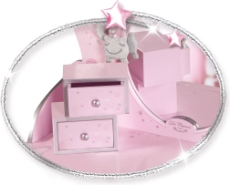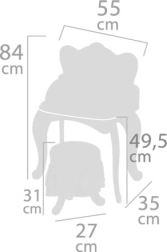 Ta drewniana toaletka inspirowana jest bajką i jest idealnym dodatkiem do każdego pokoju dziewczynki. Jest ozdobiona pięknymi nadrukami i zawiera