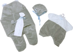 W skład zestawu wchodzi także rożek/otulacz, idealny do użycia w foteliku samochodowym.