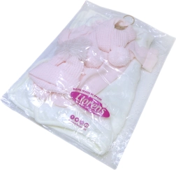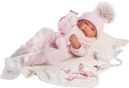 Stylowy 3-częściowy zestaw ubranek dla lalki niemowlęcej New Born marki Llorens, rozmiar 43-44 cm, zawiera ozdobny kocyk z polaru z kokardą. Wyprodukowane w Hiszpanii zapewnia doskonały wygląd dla Twoich lalek.