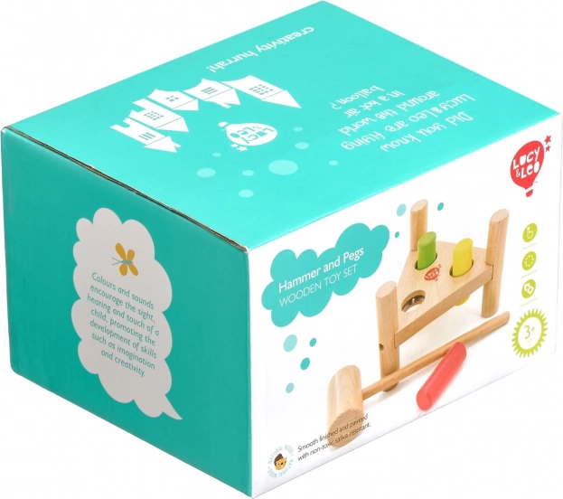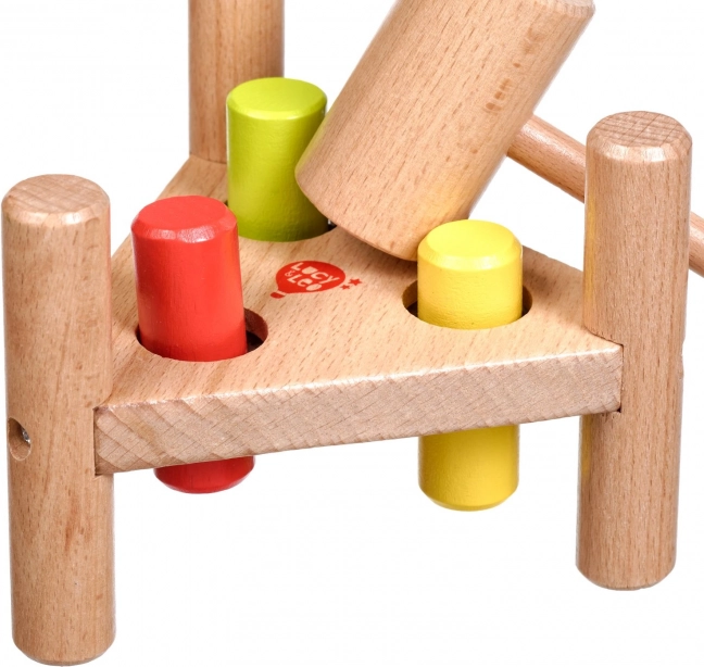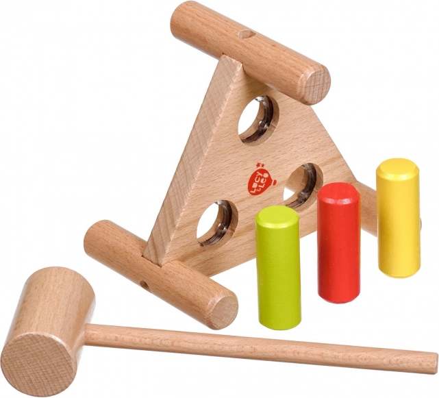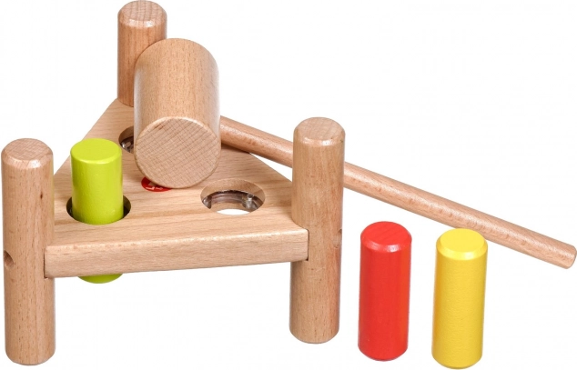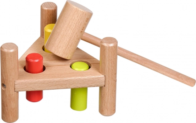 Wbijanie kolorowych kołeczków młoteczkiem wzmacnia małą motorykę, precyzję chwytu oraz koordynację ręka–oko u małych dzieci.