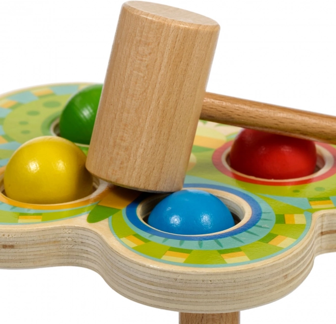Zabawny drewniany młotek w kształcie motyla z czterema kolorowymi kulkami rozwija małą motorykę, koordynację ręka–oko oraz koncentrację. Dzieci wbijają kulki młoteczkiem w otwory odpowiadających im kolorów – bezpieczna, wytrzymała i wizualnie atrakcyjna zabawka z naturalnego drewna.