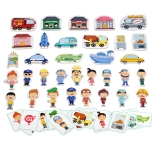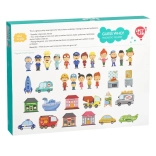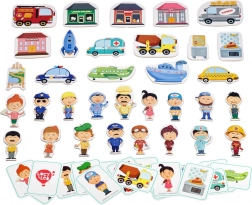 Bogaty zestaw magnetycznych elementów i dwustronnych kart motywuje dzieci do prawidłowego dopasowywania oraz swobodnej twórczości podczas poznawania różnych zawodów.