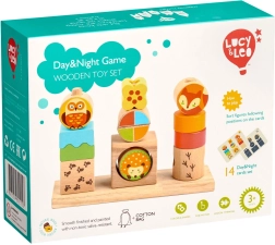 Odkryj sprytną drewnianą układankę Lucy & Leo Dzień i noc, która w zabawny sposób uczy dzieci rozróżniać kształty i kolory. Dzięki dwustronnym kartom z dziennymi i nocnymi motywami oraz stabilnej podstawie z trzema kołkami rozwija małą motorykę, logiczne myślenie, koordynację ręka–oko i kreatywność. W zestawie znajduje się praktyczny lniany woreczek do przechowywania elementów.