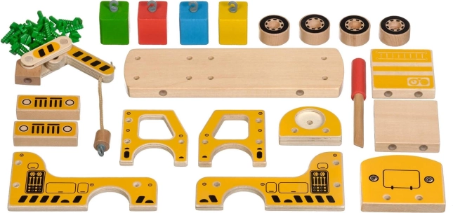 Wejdź do świata umiejętności budowlanych z drewnianym zestawem konstrukcyjnym dźwigu samochodowego od Lucy & Leo. Ten zestaw jest idealny dla małych budowniczych, którzy chcą rozwijać swoje zdolności motoryczne i kreatywność podczas zabawy przyjaznymi, drewnianymi elementami.
