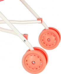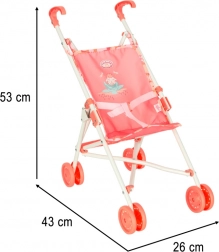 Składany design - Wózek można łatwo złożyć do kompaktowych rozmiarów, co ułatwia jego transport i przechowywanie. Uroczy motyw na siedzeniu i pasy bezpieczeństwa dodają zabawie na autentyczności. Wózek nie tylko przynosi radość, ale także rozwija wyobraźnię, empatię i umiejętności społeczne dziecka.