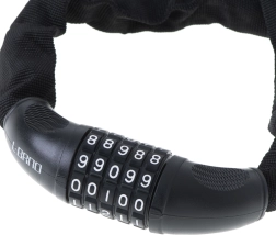 Uniwersalne zastosowanie zamka pozwala na jego użycie nie tylko do rowerów, ale także skuterów, motocykli, bram czy furtek. Łatwość ustawienia własnej kombinacji zapewnia wygodne użytkowanie. Przy wybraniu własnego kodu zapewnia dokładne zabezpieczenie przed kradzieżą.