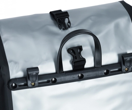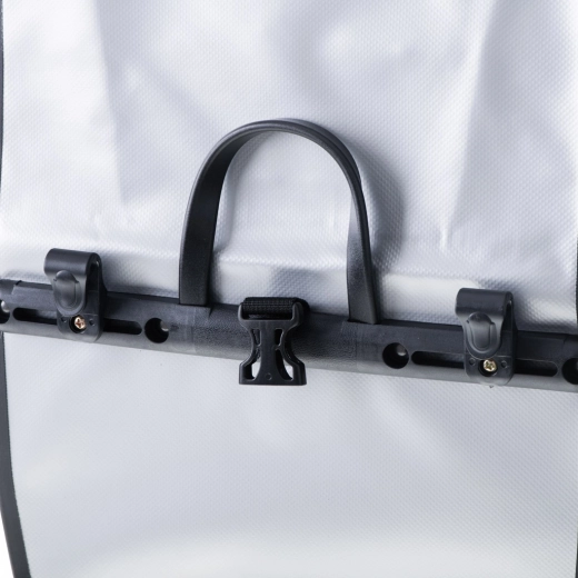 Bez użycia narzędzi torbę można łatwo i szybko przymocować oraz odpiąć od bagażnika roweru.