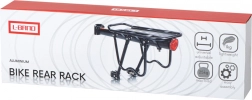 Montaż i demontaż to kwestia chwili dzięki solidnej obejmie/szybkozaciskowej obejmie oraz dołączonym elementom montażowym. Boczne osłony chronią sakwy przed szprychami, a z tyłu znajduje się czerwony odblask dla lepszej widoczności o zmierzchu. W zestawie znajdziesz korpus z platformą, ramiona boczne, teleskopowe wsporniki, śruby, gumowe podkładki i odblask.