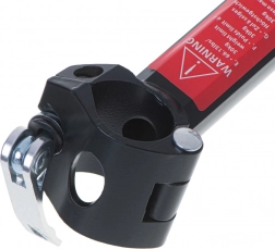 Teleskopowe wsporniki i przesuwna platforma umożliwiają precyzyjne dopasowanie do ramy. Kompatybilność ze sztycami ⌀ 28,6 mm / 27,2 mm czyni go dobrym wyborem dla wielu typów rowerów.