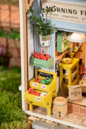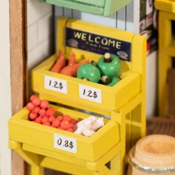 Zbuduj swój własny bajkowy kącik dzięki tej szczegółowej miniaturowej konstrukcji Sklep z owocami. Ciesz się dopracowanymi detalami, oświetleniem LED i zabawnym składaniem trwającym około 6 godzin. Gotowy model stanie się zachwycającą dekoracją na półce lub stole.