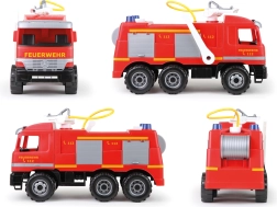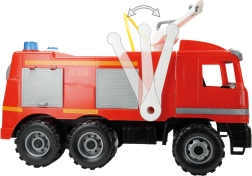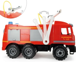 Wóz strażacki od LENA oferuje małym strażakom mnóstwo zabawy i możliwości gry. Ten model posiada boczną przestrzeń magazynową oraz 1,5-litrowy zbiornik na wodę, co zwiększa realne doznania z ich zabawy. Wykonany z wysokiej jakości materiałów, spełnia normy europejskie i ma certyfikat CE.