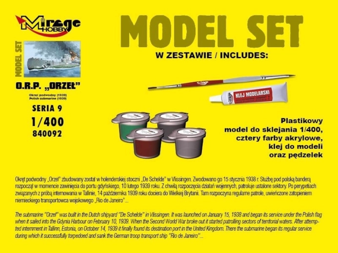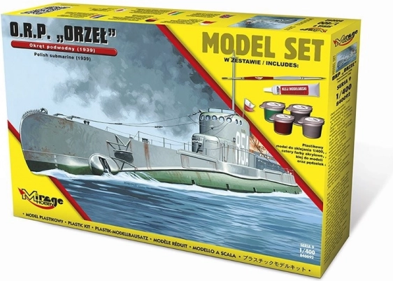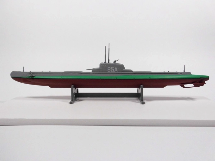 Zestaw zawiera plastikowy model łodzi podwodnej do sklejania.