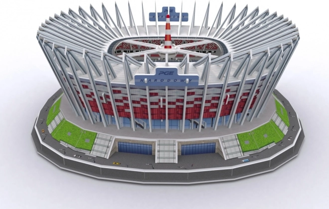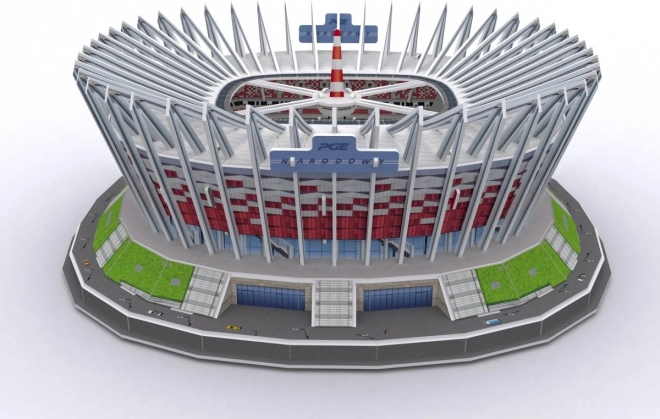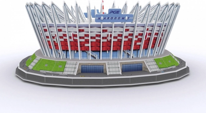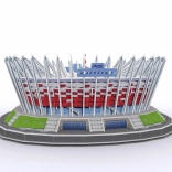 Realistyczny zestaw puzzli 3D Narodowego Stadionu w Warszawie dostarcza godzin zabawy i świetny efekt końcowy. Elementy z około 3 mm grubej pianki pokrytej laminowanym zadrukowanym papierem idealnie do siebie pasują i łatwo się składają. Montaż wykonasz według dołączonej instrukcji bez użycia kleju i nożyczek – ponacinane elementy wystarczy po prostu wyłamać z arkusza.