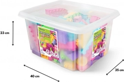 Ten barwny zestaw klocków zapewnia dzieciom godziny twórczej zabawy. Elementy zaprojektowano tak, aby małe rączki łatwo je chwytały i łączyły, co zachęca do samodzielnej zabawy oraz wspólnego budowania z rodzicami lub rodzeństwem. Przezroczysty pojemnik z zatrzaskową pokrywą trzyma wszystkie części razem i zapewnia wygodne, przejrzyste przechowywanie.