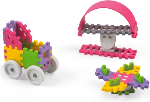 Mini konstruktor waflowy 35 elementów. Zestaw zawiera nowe klocki, które rozszerzają możliwości budowania. Produkt przeznaczony dla dziewczynek.