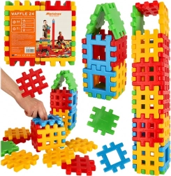 Ten zestaw zawiera 24 kolorowe elementy o wielkości około 10,5 × 10,5 cm i idealnie nadaje się do pierwszych zabaw konstrukcyjnych. Duże, łatwe do chwytania klocki łączą się bezpiecznie, trzymają kształt i można je wielokrotnie rozkładać oraz składać bez uszkodzeń. Dzieci mają mnóstwo zabawy, a jednocześnie wzmacniają koordynację ręka–oko oraz myślenie logiczne.