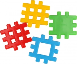 Elementy o wymiarach ok. 10,5 × 10,5 cm z kratkowym zamkiem wygodnie się trzyma i bezpiecznie łączy – perfekcyjne dla małych rączek od 2 lat.