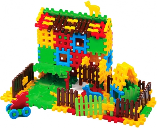 Klocki konstrukcyjne do domu w woreczkuZestaw klocków „do domu” zawierający 120 elementów.Opakowanie: plastikowy woreczek z zatrzaskiem.