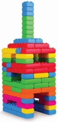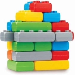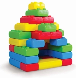 Zestaw 33 dużych elementów w trzech kształtach pozwala dzieciom wznosić domki, wieże i ściany. Lekkie i łatwe do łączenia klocki wspierają wyobraźnię i samodzielną zabawę.
