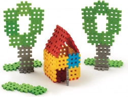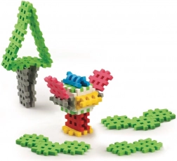 Elementy klocków wykonane są z elastycznego i bezpiecznego materiału, odpowiedniego dla małych dziecięcych rąk.