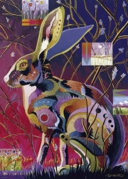 Te designerskie puzzle prezentują wyrazistą, dekoracyjną kompozycję autorstwa Boba Coontsa, artysty mieszkającego w Górach Skalistych, znanego z barwnego stylu oddającego piękno zwierząt. Motyw królika zachwyci miłośników przyrody i kolekcjonerów oryginalnych ilustracji.