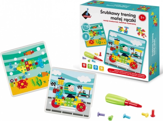 Mozaikowe klocki z wkrętakiem to zabawka edukacyjna i kreatywna dla dzieci od 3 lat, która rozwija umiejętności manualne i kreatywność.