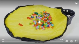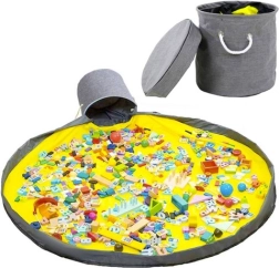 Rozłóż dużą matę (Ø 135 cm), pozwól dzieciom się bawić, a po skończonej zabawie pociągnij za sznurek ze stoperem – zabawki w mgnieniu oka trafią do kosza.