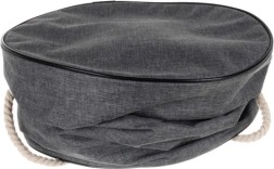 Dzięki wygodnym uchwytom linowym kosz łatwo przeniesiesz z pokoju do pokoju, na taras czy piknik. Neutralny szary kosz i żółto-czarna mata pasują do każdego wnętrza.