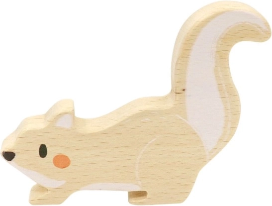 Gra wykonana jest z trwałego litego drewna z nietoksycznymi, bezpiecznymi dla zdrowia farbami i lakierami. Dzięki uniwersalnemu wzornictwu wiewiórkę i żołędzie można wykorzystać także w innych zabawach lub jako stylową dekorację do pokoju dziecięcego. Zawiera podstawkę, figurkę wiewiórki i 12 elementów do gry.