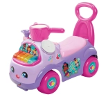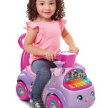 Na przodzie jeździka znajdują się kolorowe klawisze z dwoma trybami: odtwarzanie 5 wesołych, marszowych melodii oraz swobodna gra muzyczna, która wspiera kreatywność i poczucie rytmu. Nie brakuje schowka pod siedziskiem na drobiazgi i ulubione skarby.