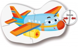 Pierwszy zestaw układanek dla najmłodszych z motywami środków transportu oferuje cztery puzzle z liczbą 2, 3, 4 i 5 elementów. Duże elementy o grubości 3 mm łatwo się chwyta, wspierają motorykę małą, koordynację oko–ręka oraz orientację przestrzenną. Idealne od 2 lat.