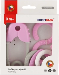 Uroczy zestaw grzechotek dla najmłodszych w pastelowych kolorach łączy kształt agrafki i ósemki. Wspiera rozwój zmysłów, trenuje odruch chwytania i jest wykonany bez ostrych krawędzi oraz małych, odłączanych elementów.