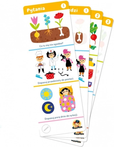 Odkrywaj świat zagadek z CzuCzu i trenuj bystry umysł w formie zabawy. Zagadki możesz czytać na głos i wspólnie szukać rozwiązania – prawidłową odpowiedź znajdziesz zawsze na następnej stronie. Poręczny format mieści się w kieszeni i zajmie dziecko w każdym miejscu.