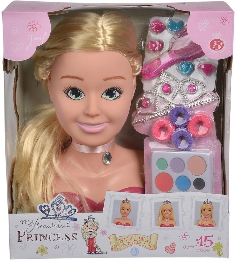 Rozwijaj kreatywność dzieci z elegancką głową do stylizacji PRINCESS marki SIMBA. Długie blond włosy, bogaty zestaw akcesoriów i paletka do makijażu pozwalają tworzyć niezliczone fryzury i metamorfozy, a zabawa wspiera motorykę małą, wyobraźnię oraz poczucie estetyki.