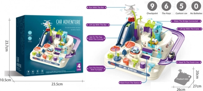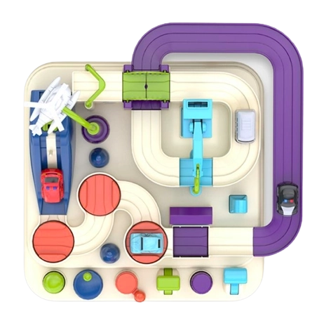 Przyciski sterujące i pokrętła dają dzieciom kontrolę nad podnośnikami, ruchomymi platformami oraz mostem. Zabawa rozwija planowanie i podejmowanie decyzji – mali kierowcy muszą przemyśleć, jak najlepiej przejechać trasę i pokonać wyzwania.
